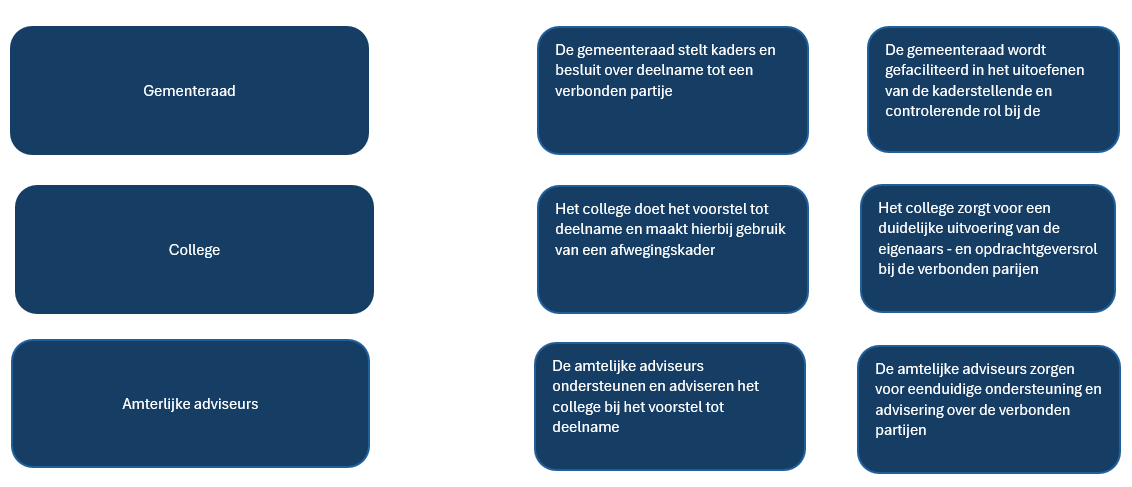 In de Nota Verbonden partijen 2013 staan kaders voor hoe de gemeente Rijswijk wil omgaan met Verbonden partijen. Het betreft de volgende kaderstellende uitgangspunten: